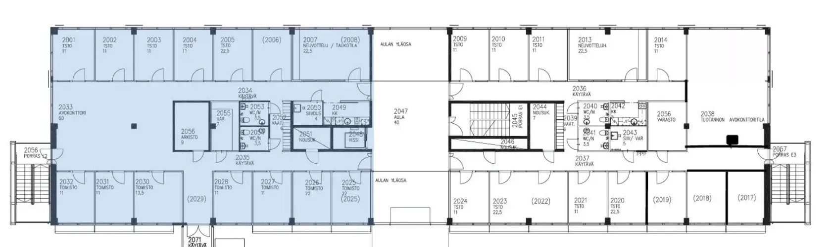 Vuokrattavana erinomaista toimistoa kohteen 2. kerroksesta. Toimitilat ovat jaettavissa käyttäjän tarpeiden mukaan.